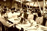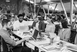 Team of designers working on laptops in modern office