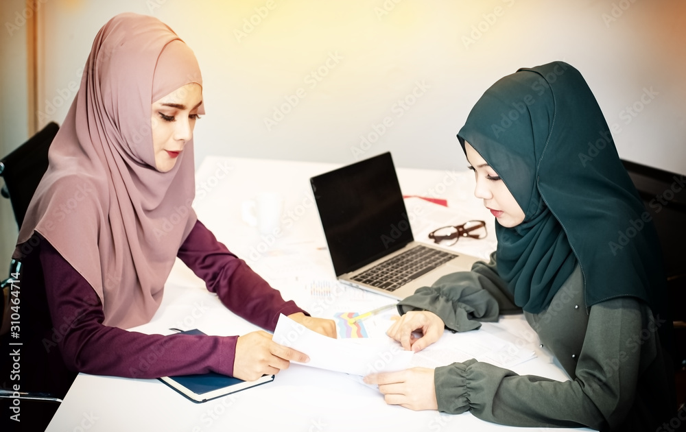 The muslim business woman doing paper work together,at meeting room,office busy time,