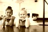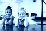 Two little girls rehearsing in dance school