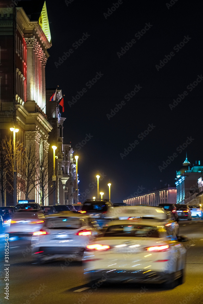 Moscow, Russia - November, 28, 2019: image of night traffic in Moscow