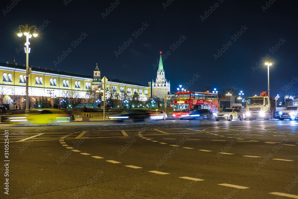 Moscow, Russia - November, 28, 2019: image of night traffic in Moscow