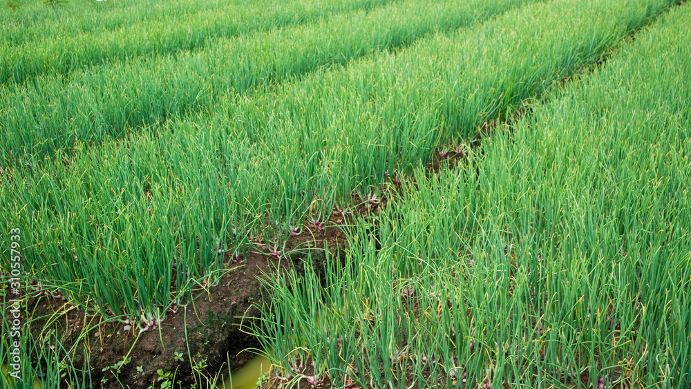 Raising shallots or Onion plantations, one type of agriculture other than rice which has high business value as cooking ingredients