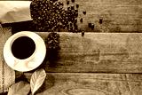 Coffee cups and roasted coffee beans