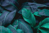 leaves of Spathiphyllum cannifolium, abstract green texture, nature background, tropical leaf