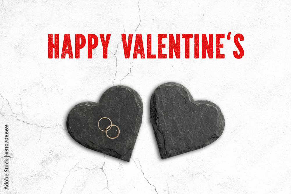 text "Happy Valentine's above hearts made of slate and two rings