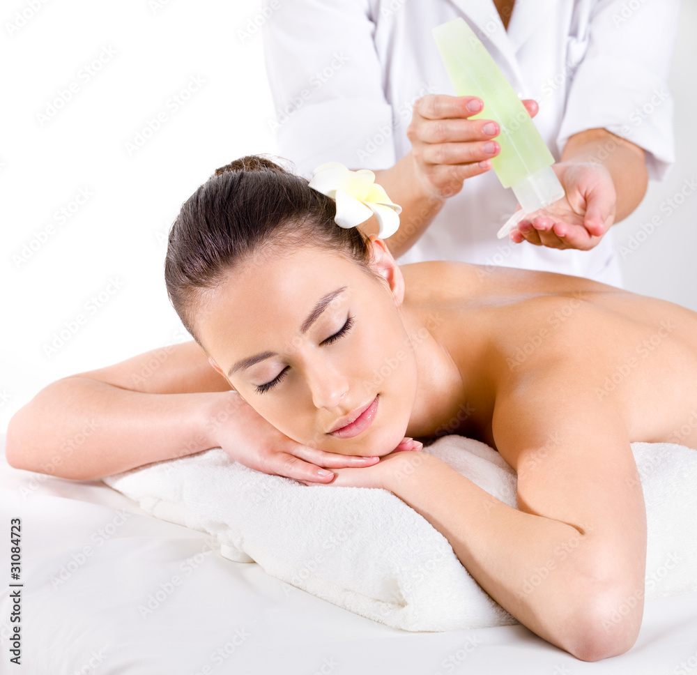 Heathy massage for young woman with aromatic oils