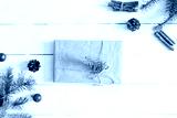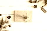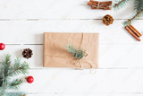 Christmas or New Year background. Fir branches with gift.