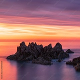 Breathtaking scenery of sea stacks during sunset under the colorful sky in Guernsey