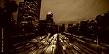 JANUARY 20, 2019, LOS ANGELES, CA, USA - California 110 South leads to downtown Los Angeles with streaked car lights at sunset