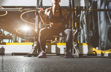Working out with barbell weights at the gym.Fitness Women exercising are lifting dumbbells. Fitness muscular body.Workout at gym.