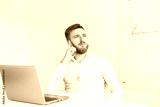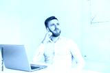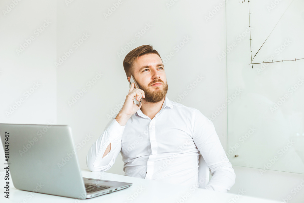 Young businessman working in the office at the laptop