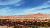 Traditional adobe village Tinghir of the Moroccan atlas valleys with oasis