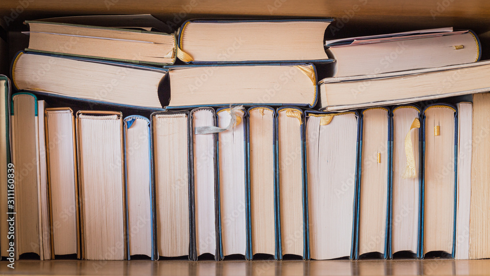 Casually stacked books on the shelf