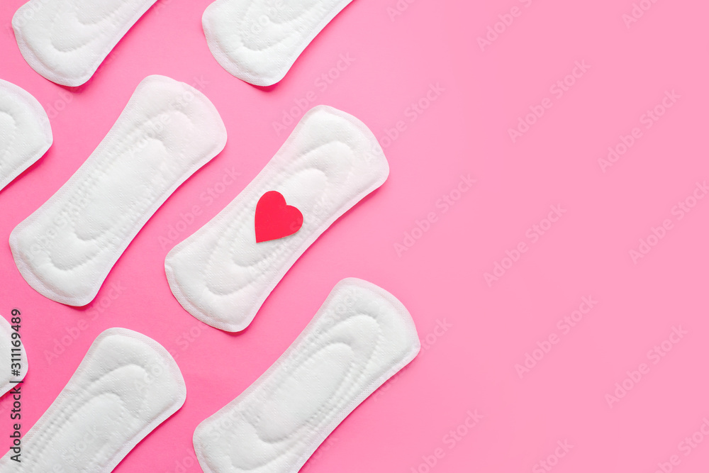 Female menstrual pads on pink background, woman's health, woman's periods cycle concept, copy space