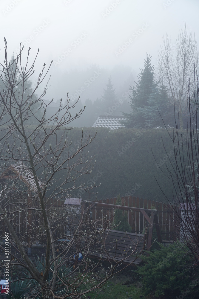 foggy, wet and gloomy morning in the countryside