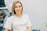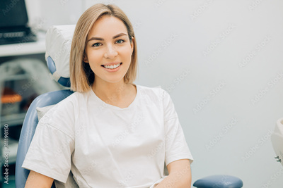 young caucasian female waiting for a dentist for treating teeth by professional. Orthodontic, oral, teeth, medcine concept