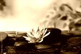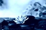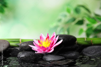 Beautiful zen garden with lotus flower and pond on blurred green background