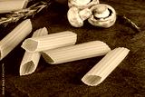 Cannelloni dry pasta with mushrooms and tomatoes. Italian cuisine.