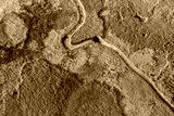 Marvelous view of winding river in green field. Lush wetlands of bird's eye view.