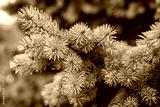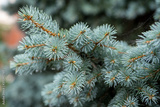 Branch fluffy blue spruce. Selective focus.