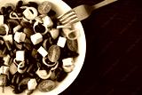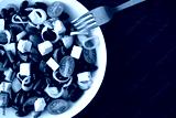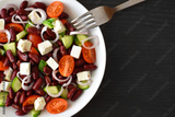 Kidney bean salad with cucumber, tomatoes, onion and feta cheese. The concept of healthy and dietary food. Copy space is on the right side. Selective focus.