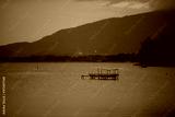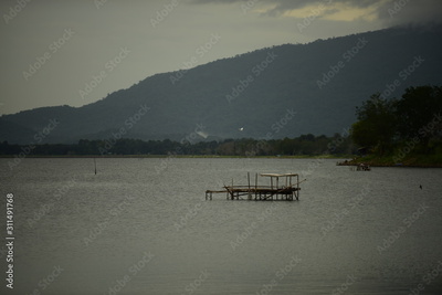 Picture of a natural waterfront view at a fresh water lake in the time before dark
