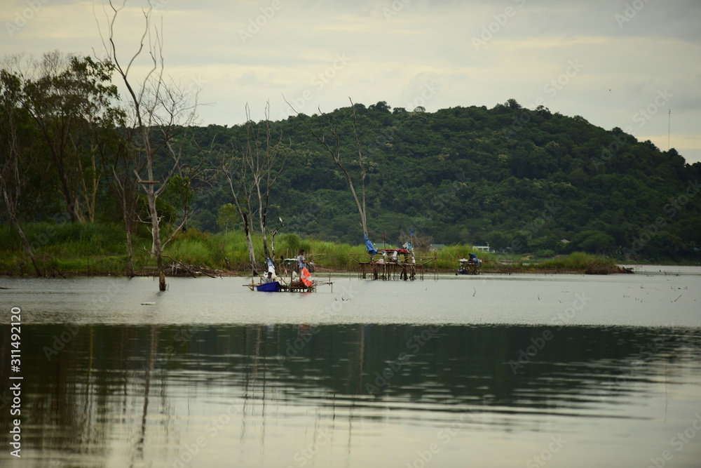 Picture of a natural waterfront view at a fresh water lake in the time before dark
