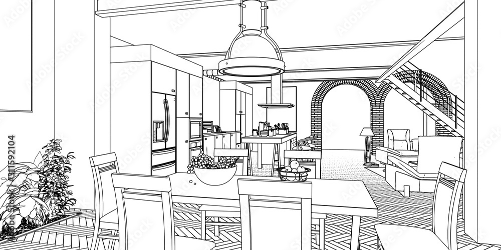 sketch of house interior - 3d illustration