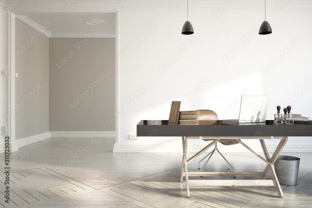 Interior of an office room in planning - 3d visualization