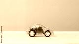 A miniature car on a white background