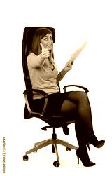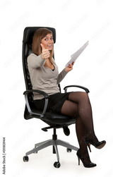 beautiful girl is sitting in an office chair