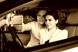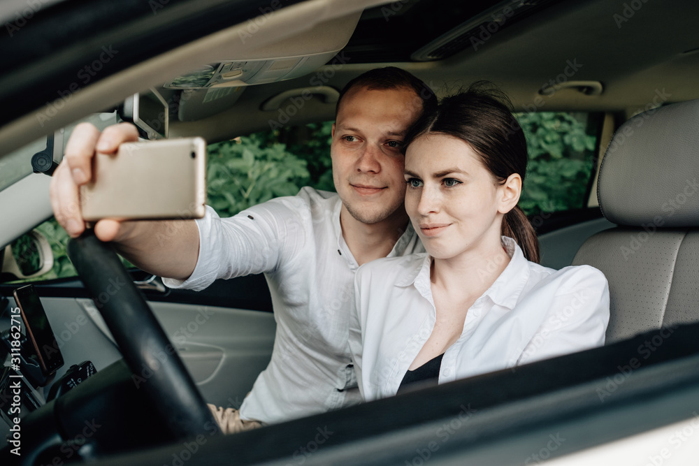 Happy Traveling Couple Together Enjoying Road Trip, Vacation Concept, Holidays Outside the City, Two Cheerful People