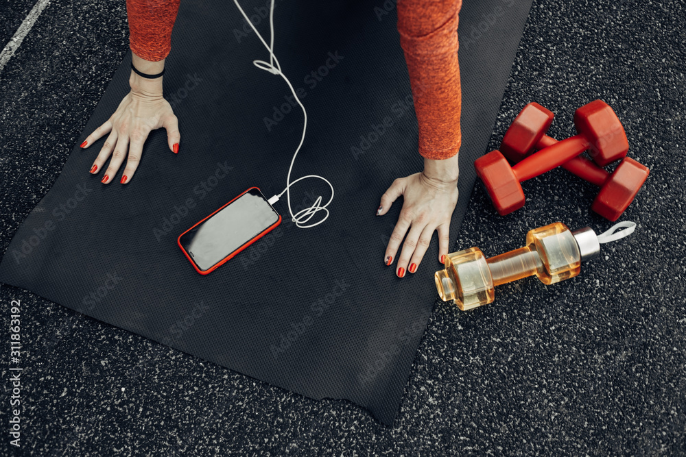 Portrait of One Sports Fitness Girl Dressed Fashion Sportswear Outfit Doing Exercise and Training at the City Stadium, Healthy Lifestyle Concept