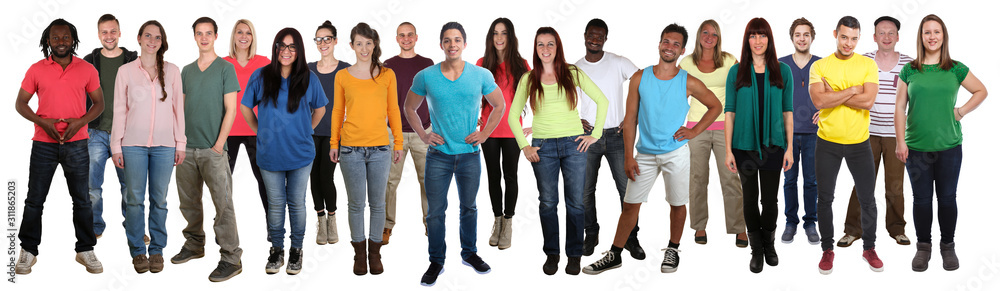 Multicultural group of young people smiling happy multi ethnic full body standing