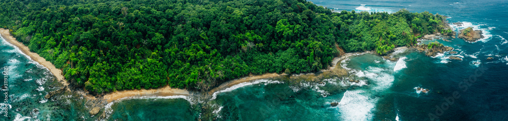 Aerial Drone View of a tropical island with lush jungle in Costa Rica, Isla del Caño
