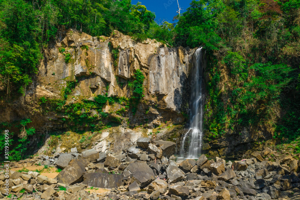 Aerial Drone view of waterfall Nauyaca in Costa Rica surrounded by the tropical rainforest