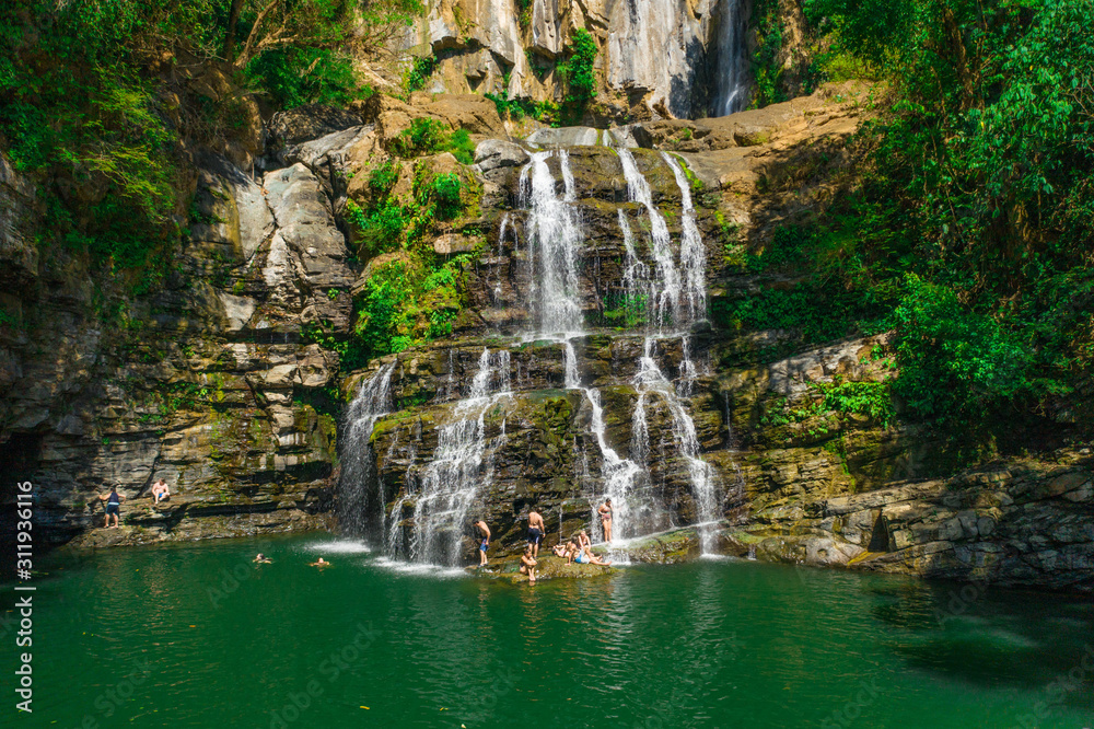 Aerial Drone view of waterfall Nauyaca in Costa Rica surrounded by the tropical rainforest