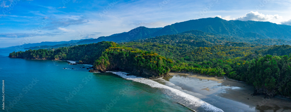 Aerial drone view of a tropical paradise beach. Playa Ventanas in Costa Rica