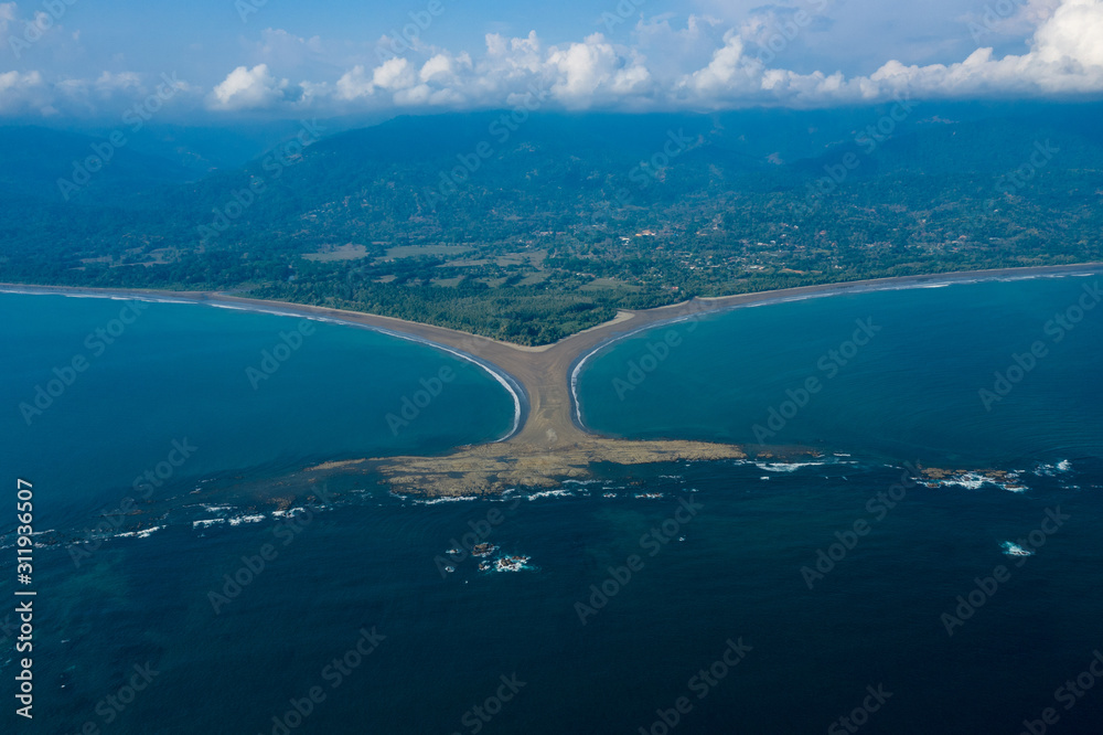 Aerial Drone View of the Whale's Tail at the Marino Ballena National Park in Uvita, Costa Rica