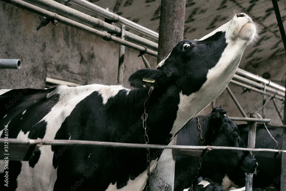 Cow close up. Rural dairy farm with cows