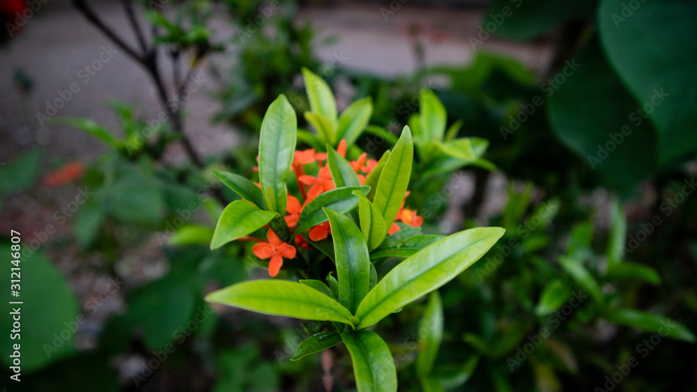 Beautiful Epidendrum is red, grows beautifully in the garden. ornamental plants that are easily cultivated as yard decorations or home terraces
