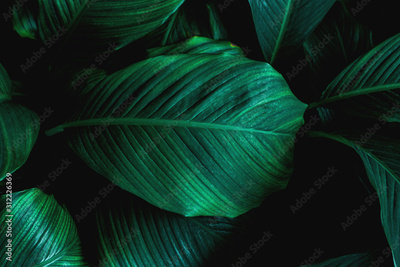 leaves of Spathiphyllum cannifolium, abstract green texture, nature background, tropical leaf