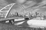 Panoramic view of Walterdale suspension bridge and downtown skyline in Edmonton, Alberta, Canada.