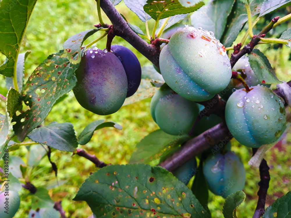 ripe plums on a branch