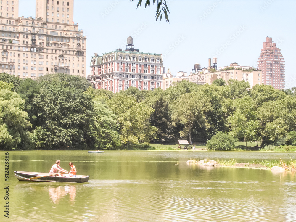 New York street view with modern and old historic buildings