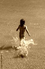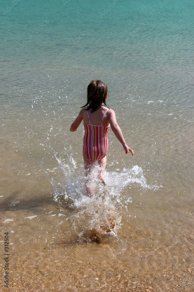 girl running into the water