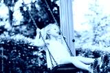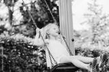 Pretty little girl having fun on playground, child on a swing, summer leisure for kids