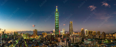Taipei, Taiwan - September 09, 2019 : Xinyi District at Taipei, Taiwan.The district is a prime shopping area in Taipei, anchored by a number of department stores and malls.