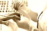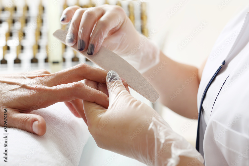Manicure, nail sawing, woman in a beauty salon.