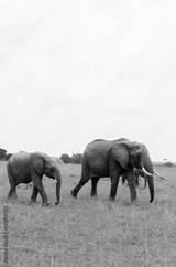 A herd of Elephants grazing in the grasslands of Masai Mara National Reserve during a wildlife safari